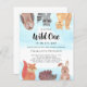 This cute Budget Gender-Neutral Baby Shower invitation is decorated with hand-drawn watercolor forest animals on a blue sky background.