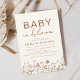Celebrate the arrival of a new bundle of joy with a beautiful Baby in Bloom themed baby shower. Join us for an afternoon filled with love and happiness as we honour the soon-to-be parents. The invitation features a stunning terracotta - burnt orange text, accented by an array of vibrant wildflowers.