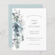 Winter Florals Wedding Save The Date. A budget price SMALLER 4.5” x 5.6” alternative. Available in a SEMI-GLOSS 110 lb CARD STOCK which is the default option (thicker for invitations), OR a SATIN FINISH 80 lb THINNER PAPER STOCK (ideal for enclosures). Envelopes are an optional extra and are slightly larger than the card size. Modern watercolor winter foliage and flowers for winter and holiday weddings, in soft teal and powder blue running along the left hand side and typography to the right. A coordinating blue is on the back. Easily personalise the text to your own details.