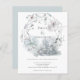 A value for money BUDGET alternative on a smaller size 4.5 x 5.6” semi-gloss 110lbs weight, which is of similar thickness to a postcard (however is not suitable to use as a postcard.). PLEASE NOTE there is ONE per sheet. Winter Foliage Berries Wedding Invitation. A budget price SMALLER 4.5” x 5.6” alternative. Perfect for weddings in the winter, and especially festive weddings, this design has an elegant wreath of wintery branches, berries and leaves with a watercolor winter forest behind. The simplistic serif typography is easily personalised to your own details. On the back, in the centre, is a frosty forest watercolor scene.