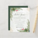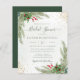 Beautiful affordable bridal shower invitation featuring hand-painted botanical watercolor illustrations of winter greenery, pine and spruce branches, cones and holly berries with gold glitter. Perfect choice for winter or Christmas holiday themed weddings.