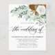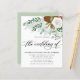 Elegant winter greenery budget wedding invitation features typography script in handwritten lettering ''the wedding of'' and winter greenery, flower and pine floral arrangement. No envelopes included. Perfect for winter weddings.