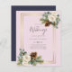 Beautiful white Roses, Eucalyptus leaves, rustic pine cones, and a gold frame feature on this winter wedding item which is part of a larger collection that includes budget wedding invitations, save the dates, RSVPs, labels, gifts, stationery, and more. For a FREE winter wedding planning, guide visit weddingdesignchic.com.