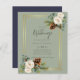 Beautiful white Roses, Eucalyptus leaves, rustic pine cones, and a gold frame feature on this winter wedding item which is part of a larger collection that includes budget wedding invitations, save the dates, RSVPs, labels, gifts, stationery, and more. For a FREE winter wedding planning, guide visit weddingdesignchic.com.