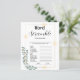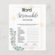 Design features left corner greenery incorporated into shiny rectangle with Greenish-grey background. Simple and Elegant. This Bridal shower game template combines two different fonts for more dynamic look.