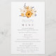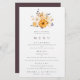 Yellow Florals Foliage Wedding Menu. A budget price size 5.5” x 8.5”, on an elegant 110 lb LINEN stock – for a luxury feel at great value, this is perfect for menus, as well as invitations and programs etc. This budget size alternative is also available in other paper choices. The SEMI-GLOSS 110 lb card stock is about the same thickness as a postcard, so also works well for invitations. The FELT 100 lbs paper is buff coloured, NOT white, so adds a rustic touch. The MATTE 80lbs paper stock is bright white, for crisp printing, great for your menus and programs, whilst the SATIN 80lbs paper is thin and light, ideal for enclosures. PLEASE NOTE THE OPTIONAL ENVELOPES ARE A LITTLE BIGGER IN SIZE AT 6.75” x 9” approx. A bouquet of summery coloured florals is at the top and easily personalise the text below. A coordinating dark grey background is on the back. You can also change the font style and colours and the background colours on the front and back if you wish via the Click to Customize Further option.