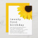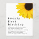 Yellow Sunflower Twenty First A budget friendly SMALLER 4.5” x 5.6” alternative. Available in a SEMI GLOSS 110 lb CARD STOCK or a SATIN FINISH 80 lb THINNER PAPER STOCK. Envelopes are an optional extra. .Rustic style with a giant yellow sunflower to top right and the heading is large below in stylish lowercase with the details at the bottom. Easily personalise the text to your own details.