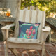 The colourful, abstract artwork by ZoeSPEAK on this 16” Throw Pillow was created from an original photograph of an agave plant. The photo view is from overhead, showing the deep pink flower buds against their background of bluish green disc-shaped leaves. The image is surrounded by a black border, for a crisply modern look.