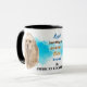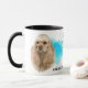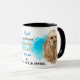 A portrait of a beautiful buff or blonde coloured American Cocker Spaniel Dog is the feature on two sides of this mug. Each image is placed on a bright blue splatter background. Between the two images is the text that describes this loyal and playful companion, with "the AMERICAN COCKER SPANIEL" in black at the bottom. All the text is easily customized to anything you'd prefer so that you may describe your own loyal friend.