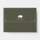 This fun envelope features an interior pattern of outdoor adventure graphics including buffalo, deer, eagle, arrows and more all in solid white on the background colour of your choice (just change the rectangle fill colour). Exterior darker green background is also optional. A small buffalo icon in black adorns the top flap above your name and address. You don't have to be a lumberjack to love this trendy design! Works well for both adventure-related business or personal use. Search ID599 to see other colour options and products with this design.