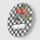 Buffalo Check Plaid Black White Family Name Custom Large Clock is the perfect addition to your rustic kitchen decor. Featuring a popular black and white buffalo check pattern with red berry accents, along with your family's name in a classic font, you will love this pretty personalized wall clock. Personalize by clicking "Customize It"!