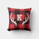 Buffalo Check Plaid with Antler Monogram Throw Pillow