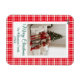 This charming Merry Christmas flexible photo magnet blends classic holiday cheer with a trendy design, perfect for decorating your fridge or any magnetic surface. The border features a bold, festive red and white gingham plaid pattern, creating a warm and traditional cottage or farmhouse feel. Adorning the top are delicate green ribbon bows for an extra touch of elegance. This magnet beautifully frames your favourite vertical family photo and includes space for a personalized message and year. It's a wonderful, durable keepsake to send a heartfelt, personal greeting that stays visible all season long. Easily customize the text and upload your picture to make this plaid Christmas magnet uniquely yours!