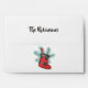 Christmas envelopes featuring buffalo plaid bunting and elements customizable with your text.