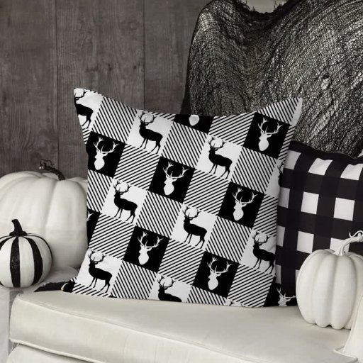 Christmas Deer or Wild Stag in Buffalo Plaid Check Pattern.