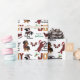 This cute Holiday wrapping paper is perfect for the Dachshund Dog lover! It features several images of little Dachshunds, with a red and black buffalo plaid theme. Text says "We woof you a Merry Christmas", JOY, "Dachshund through the snow", and your own custom signature. There's even a little buffalo plaid sleigh and pine cones!