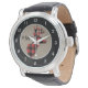 Here's a fun and trendy watch that is attractive, too! At the centre is a red and black buffalo plaid silhouette buck deer head. Beside the deer image is your three letter monogram in black. The image is placed on a light tan background, which is surrounded by a black circle with white numbers, making the watch easy to read.