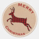 Rustic craft paper look holiday sticker with a red and black buffalo plaid deer silhouette, in the middle. Merry Christmas in red arched text can be personalized to suit your needs. Matching holiday products are available.