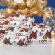 The repeated pattern on this cute Christmas wrapping paper is an image of a majestic Doberman Pinscher dog with a black and red buffalo plaid pillow behind him, and a coordinating gift package with a gold ribbon beside him. There's also a buffalo plaid bow and the matching text that says "JOY". Stylized red and black buffalo plaid text says MERRY CHRISTMAS", and your own signature is in two fields for you to customize.