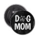 Dog pawprint with "dog mom" text and black and white buffalo plaid pattern on black leather textured background.