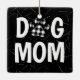 White dog hair and black and white buffalo plaid pawprint with "dog mom" text on black background.
