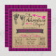 Girls Boho baby shower invitations with baby feet and arrows on a Kraft paper and hot pink buffalo plaid background. This Boho adventure begins baby shower invitation is easily customized for your event by simply adding your details.