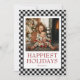 Buffalo Plaid Happiest Holidays Photo Holiday Card in black and white chequered plaid.