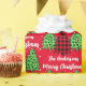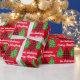 Buffalo Plaid Leopard Christmas Trees Merry Christmas red background design features cute Christmas trees, one made with buffalo plaid and two in green leopard and says Merry Christmas. Customize name or other text in place of a name.