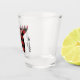A red and black buffalo plaid silhouette moose head pairs with two opposing black arrows on the front of this shot glass. Couldn't be anything better for hunting camp!