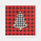 Red, black and white Buffalo plaid, gingham Christmas Trees paper napkins for your Christmas party.
