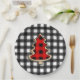 Buffalo Plaid, Red Gingham Christmas Trees Paper Plate
