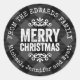 Autocollant rond imprimé sur mesure et abordable étiquettes cadeaux de Noël personnalisées avec votre nom de famille ou autre texte. Ce design de vacances rustique moderne présente des lettres MERRY CHRISTMAS en détresse sur un arrière - plan de buffle gris et noir. Utilisez les outils de conception pour choisir n'importe quelle couleur arrière - plan et modifier les polices de texte et les couleurs pour customiser plus loin votre propre cadeau de vacances enveloppant les étiquettes.