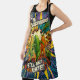 Vegetables - ear of corn, cucumber and carrot - running for their lives in the garden to escape a bug attack but getting eaten is inevitable on this kitchen apron for men or women, perfect for looking awesome when cooking in the kitchen or at the grill.