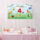 Cette bannière de papier d'anniversaire de bogue est amusante et colorée, avec une fête de bogue comprenant une abeille mignonne, une araignée violette, une chenille, une fourmi, une coccinelle, un papillon et un escargot - le tout célébrant l'anniversaire de votre enfant. Drapeau arc-en-ciel, fleurs et nuages blancs bouffants ajoutent à l'atmosphère festive. Les filles comme les garçons adoreront ces personnages de bug !