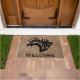 Personalize this Unique "One of a Kind" Bull Elk Door Mat! It Features a Majestic Bugling Bull Elk Black Silhouette...on a Brown Leather Background!