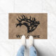 Personalize this Unique "One of a Kind" Bull Elk Door Mat! It Features a Majestic Bugling Bull Elk Black Silhouette...on a Brown Leather Background!