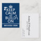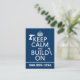 This reads Keep Calm and Build On, in the style of the classic keep calm poster. There are silhouettes of a hammer and power drill around the words. It's a fun eye catching design, perfect gifts for all builders and contractors, or anyone who likes a bit of DIY.