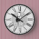 Builder clock. Builder is standing with building materials around him. A fun clock for a builder or construction worker. Stylish gift builder's clock. Suitable for a Builder's office, or the walls of a construction company or Builders Merchants. Bold roman numerals and a black, white and grey watch face. Construction company clock.
