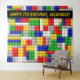 Fun birthday backdrop for a boys primare colo birthday party theme! Cool Primary colours, red green blue yellow white and grey, linked interlocking generic brick building blocks pattern looks like fun children's play toys. Great for a Boy's birthday party theme as favours and decorations.