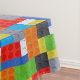 Building block red blue green yellow orange tablecloth.