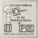 Little Boy stands on letter blocks which spell the word “HOPE”, he holds the block with the letter “O” to spell out the word OTHERS in this quote “Let your faith in others be the building blocks of hope.” Believe in the Unbelievable in YOU! Quotes ©Little Boy, Big Dreams, LLC and David A. Carrizales and artwork © Christie Black of Creations from the Heart.