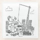 Gift for a crane operator or construction worker. On a building site a builder is sending tea and sandwiches up to the overhead crane operator. Funny construction site cartoon illustration.