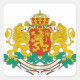 The coat of arms of Bulgaria consists of a crowned golden lion rampant over a dark red shield; above the shield is the Bulgarian historical crown. The shield is supported by two crowned golden lions rampant; below the shield there is compartment in the shape of oak twigs and white bands with the national motto "Unity renders power" inscribed on them.