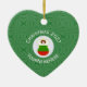 Christmas angel wears the flag of Bulgaria on this heart shaped ceramic ornament for Christmas decor. The Bulgarian angel flies in the centre of a white circle of squiggly squares surrounded by a background of green squiggly squares. Add a name to personalize. Add the year to customize. You can add your own text instead, if you wish.