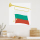 This "Bulgarian Flag on Bugle" Poster also makes a fantastic gift for friends and family with Bulgarian ties or for anyone who appreciates the beauty of flags and musical instruments. Don't miss the opportunity to own this extraordinary piece of art that beautifully combines the essence of Bulgaria with artistic creativity.