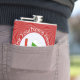 Hip flask showing the Bulgarian LOVE FLAG. The word LOVE is featured in red letters inside a white, fractal circle of squiggly squares. The circle sits on a red, fractal background of squiggly squares. Perfect Valentine's Day gift for him, but can be customized for any occasion. Enjoy the flag of Bulgaria.
