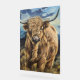 Vache forte de Highland debout bravement à travers le panneau de tempête