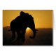 Un magnifique éléphant à taureau est en silhouette crue contre les feux du soleil couchant.