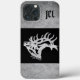 Personalize Your Cell Phone with this "One of a Kind" Bull Elk iPhone Case. It Features a Silver Bugling Bull Elk Silhouette on Black Background...with Silver Leather Borders!