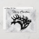 Send Family & Friends this "One of a Kind" Bull Elk Christmas Postcard! It Features a Black Bull Elk Silhouette Surrounded by White and Silver Snow Covered Branches and Snowflakes!